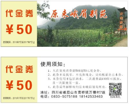 原来峨眉别苑消费满499赠送50现金券