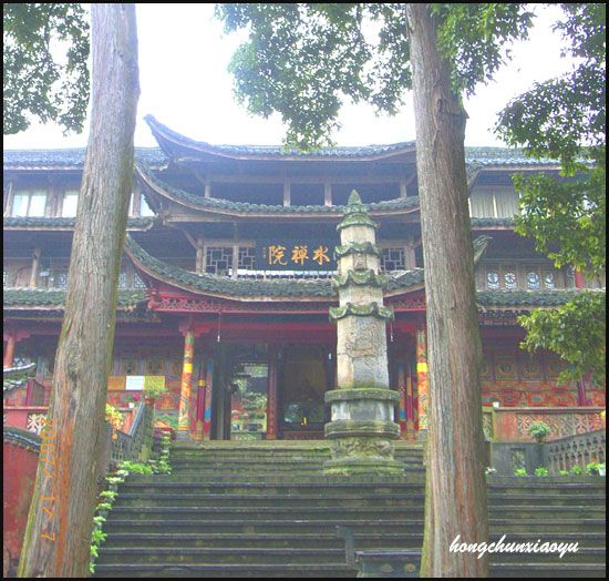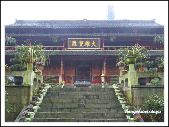 上个星期日,城区下小雨,蹬上雷音寺后,天上飞起了难得一见的雪花,我们汗淋淋蹬上纯阳殿之后,绕有兴趣往前行,异口同声说出“观光圣水阁”。在峨眉生活近30年,早有所闻的峨眉山“圣水”,一直没有见过,这一段山道平缓,我们加快步子。在通往圣水阁路上的观景亭,相遇一个从圣水阁而来,在此歇脚的大姐,真厉害,背30来斤水,每周都这样。她告诉我们,峨眉城区很多人,在喷水池坐峨眉山管委会开住五显岗的通勤车,在圣水阁下车,有的人像她这样取“圣水”,有的人在这里下车游览圣水禅院,然后徒步纯阳殿,到伏虎寺停车场坐车返回城里。原来,她这样背水,比我们在高洞口背水的路途远。