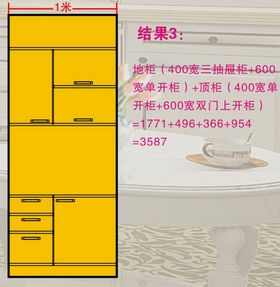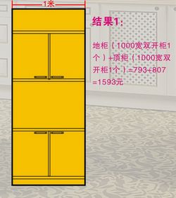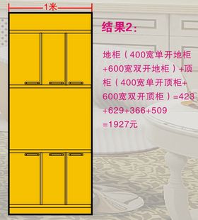 如:在1米宽的空间内设计橱柜,搭配不同。价格也不同。(以进口的双饰面为例,尺寸单位:mm,价格单位:元)