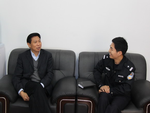 4月14日上午,峨眉山市副市长、公安局长李先友到乐都派出所调研工作。在听取了所长彭元东关于辖区刑侦、治安、禁毒等工作汇报后,李先友副市长关切询问了重点企业改制引发的矛盾纠纷排查化解情况,认真查看了派出所视频监控系统、户籍办理窗口、值班备勤室等基础设施,重点了解了辖区大型工程建设涉及的治安管理、征地拆迁等工作现状。他对乐都派出所的工作成绩给予了充分肯定。他说,乐都所只有7名民警,人少事多,工作任务重,全体民警团结一心、锐意进取、奋发有为,治安防控到位、信息研判及时,有效处置了重点企业改制、矿山开采等引发的堵厂、堵路问题,强化打击了职务侵占、盗窃“三电”等犯罪行为,辖区社会治安平稳,这些成绩的取得与同志们的默默奉献是分不开的。