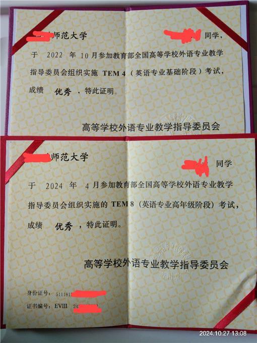 专业/技能:有丰富的教学经验和方法,有5年的一对一英语家教简历,英语专八优秀,有高级中学英语教师资格证,有各种英语竞赛获奖荣誉证书